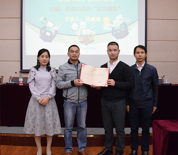 金秋十月,丹桂飘香,汽车与交通学院于10月23日下午在国际交流中心二楼报告厅举行了“母校有约”校友论坛活动。学生处处长助理刘文庆老师、校友办刘玮老师、汽车与交通学院学工办主任徐锋老师以及汽车与交通学院100多位学生参加了活动。本次活动邀请到了我院优秀校友原汽修51071班学生、现欧尚集团(中国)投资有限公司市场部首席营运经理孙威威先生,他为同学作了“叛逆90后的逆风翻盘”的主题讲座。讲座开始前,刘文庆和刘玮、徐锋等三位老师代表学校为孙威威颁发了乐鱼app登录入口兼职教师聘书。