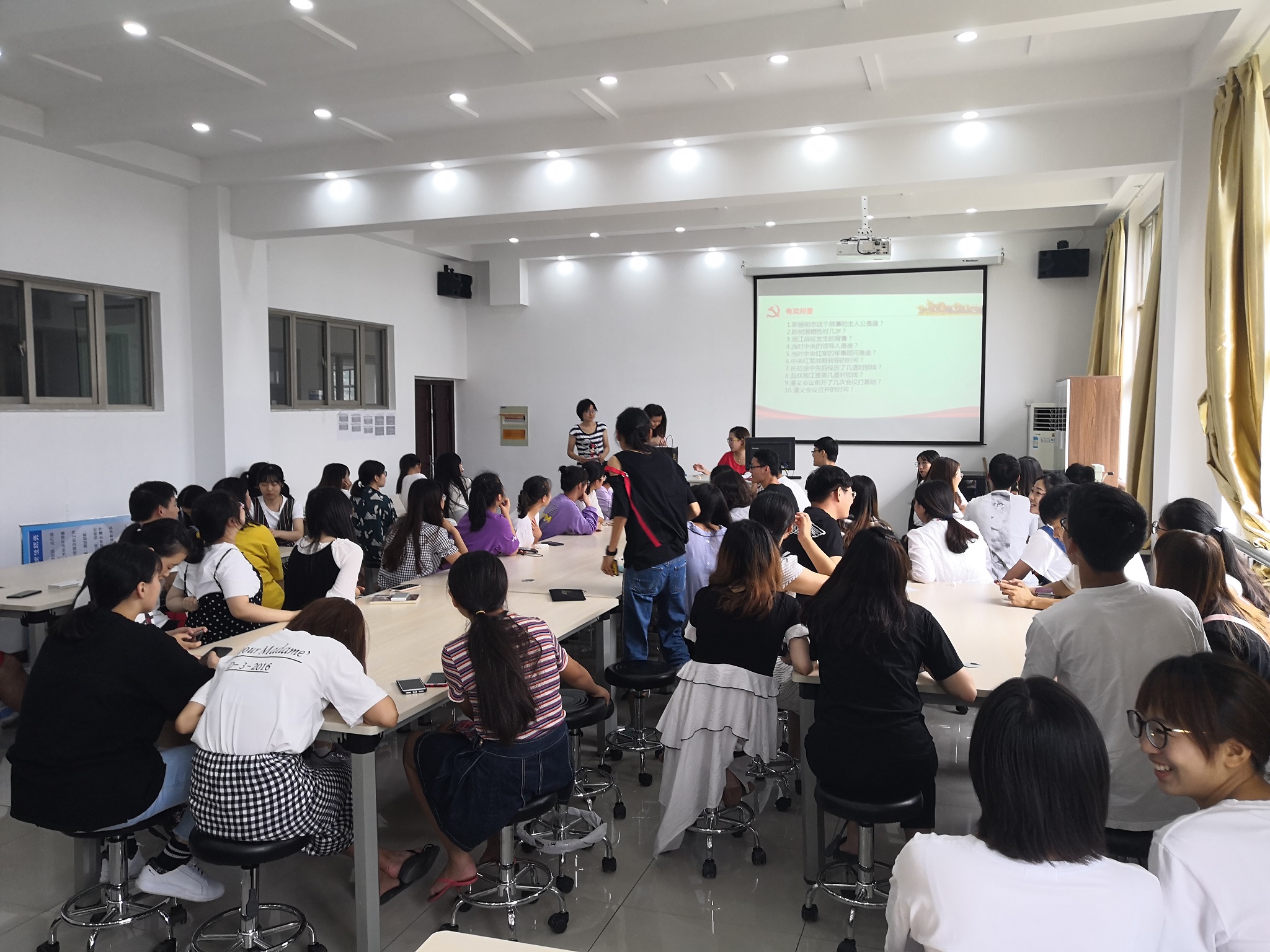 9月11日下午,财经学院党总支邀请省级爱国主义教育基地工作人员在明德楼308举办“闻天精神进校园——红军长征中的张闻天”专题讲座活动。无锡张闻天旧居工作人员张晓晶、沈茜,财经学院党总支书记吴明芳、学生支部书记汤淇和我院80余名分党校学员参加活动。
