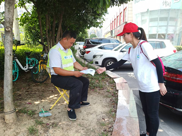 16当天,团队成员迅速分配好自己的任务,进行问卷调查。烈日炎炎,骄阳似火,却依然不能阻挡志愿者们前进的脚步,一个个被汗水浸湿的背影、被烈日染红的脸庞,整齐划一的服装形成了夏日阳光下一道亮丽的风景线。志愿者们相互帮助配合,整个团队充满活力与凝聚力,过往市民也都很配合,积极填写问卷,提出很多宝贵的意见和建议,为之后工作的顺利开展提供了极大的帮助。