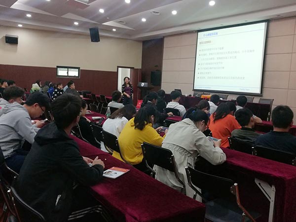 培训将理论教学、实践操作紧密结合,徐瑾老师以详尽的实例讲授了现代救护的概念,向学员们讲解并演示了心肺复苏术的技术要点,专业视频的动作分解,《白金十分钟》MV和“心肺复苏歌”《staying alive》激发了大家动手演练的热情。学员们还在老师的指导下完成了三角巾头部包扎等技术操作,就日常生活中遇到的脚踝扭伤、溺水等情况的救护步骤进行了咨询。现场互动频繁,气氛热烈。