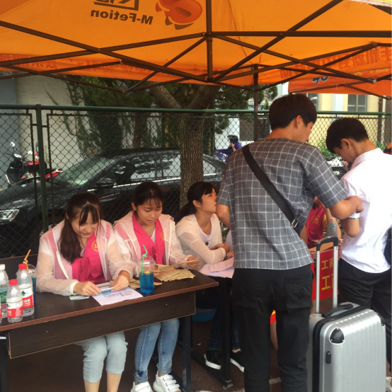 9月11日,新生陆续抵达学校报到。不断前来的新生让各小组的志愿者们忙的不亦乐乎,不管是宿舍楼底帮忙搬行李的学长还是耐心解答疑问的学姐,即使冒着大雨,都还是有条不紊的为新生服务。新生报到的每一个环节都会有师兄师姐的陪同。高效的办事效率,亲切的待人态度,大大增加了新生和家长们对管理学院的认可与信赖。