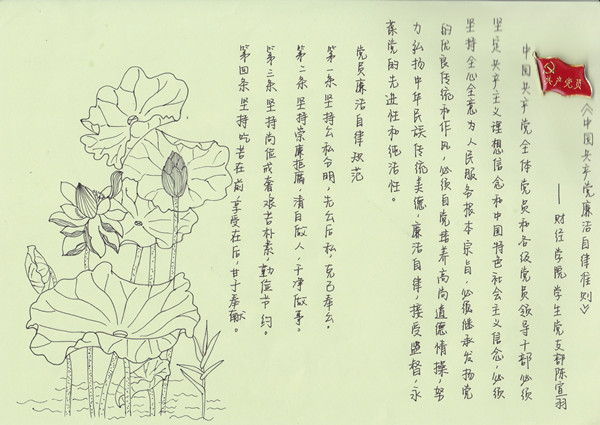 财经学院党总支广泛发动、认真组织,调动师生的活动积极性,提交了多种款式手抄作品。通过这种学党章党规的方式,让广大师生党员在抄写中加深了对党章党规的学习理解,增强了自律意识,也形成了良好的学习氛围,为进一步深化‘两学一做’教育活动提供了有利的支持。
