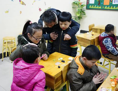 1月6日下午,虽然寒凝大地,但无锡市南长区培智学校的教室里却暖意浓浓。来自艺术设计系的53名师生志愿者,正在这里向100多名智障儿童赠送水彩笔、七巧板、巧克力等礼品,并和小朋友们一起唱歌、做游戏、捏橡皮泥,给这些特殊孩子送去了一片爱心和温暖。