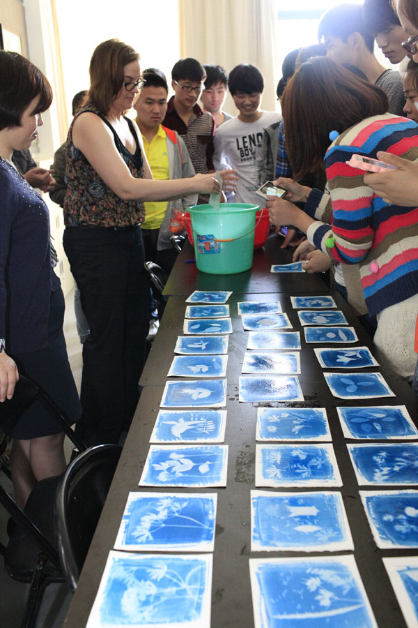 Charity一行是首次来访我校,上午与艺术系动漫班师生进行了课程内容的交流互动,双方教师分别授课,Charity教授的摄影实践课受到了艺术系学生的好评,在课程作业成型过程中Charity利用简单的摄影原理讲解图片成像的过程,最后作品呈现效果更是令学生赞叹不已。