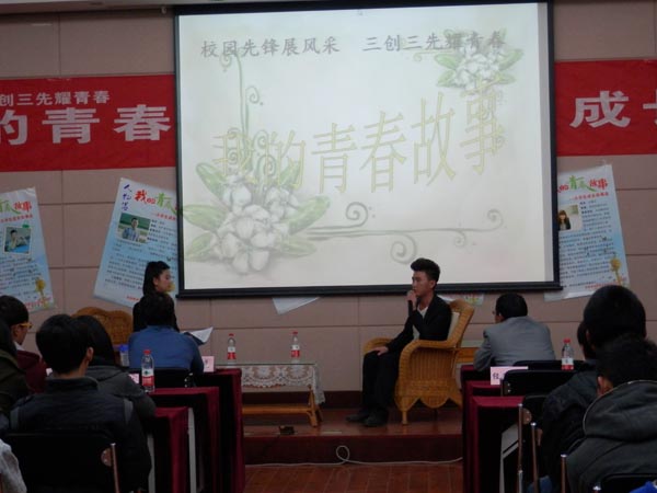 11月6日晚,控制技术学院在国际交流中心二楼举办“我的青春故事会”,校团委书记徐悦、控制学院分团委花树洋老师和大一各班级代表180多人参加,故事会现场还通过腾讯微博,台上台下实现了实时互动交流。大家分享了郝宗豪、陈胜、王慧云、王贤斌、尹其营、张乔6位先进典型学子的精彩青春故事。(花树洋)