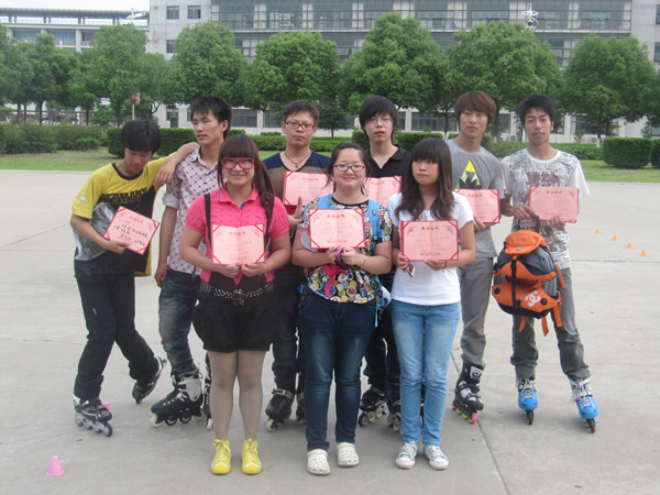 5月25日,由体育部主办、轮滑协会协办的首届轮滑比赛在宿舍区篮球场举行,80多名同学参加了比赛。