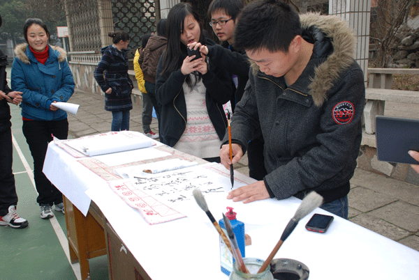 该活动为师生中的书画爱好者提供了一次观摩交流的机会,展出的学生作品在内容、创作技巧等方面都具有一定的水平。活动还邀请了吉鑫明老师到场指导,并现场创作书法作品十余幅。(金明 文/摄)
