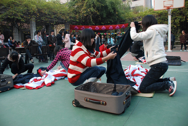 11月22日下午,经管学院在西篮球场举办生活技能创意大赛。比赛共设废品回收利用、泡面超人、内务标兵三个项目,50余名选手参加了比赛。