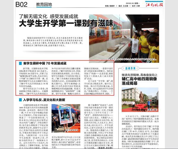 【江南晚报】了解无锡文化 感受发展成就 大学生开学第一课别有滋味