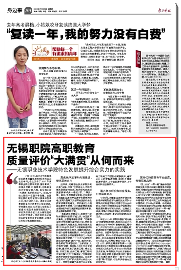【扬子晚报】无锡职院高职教育 质量评价“大满贯”从何而来