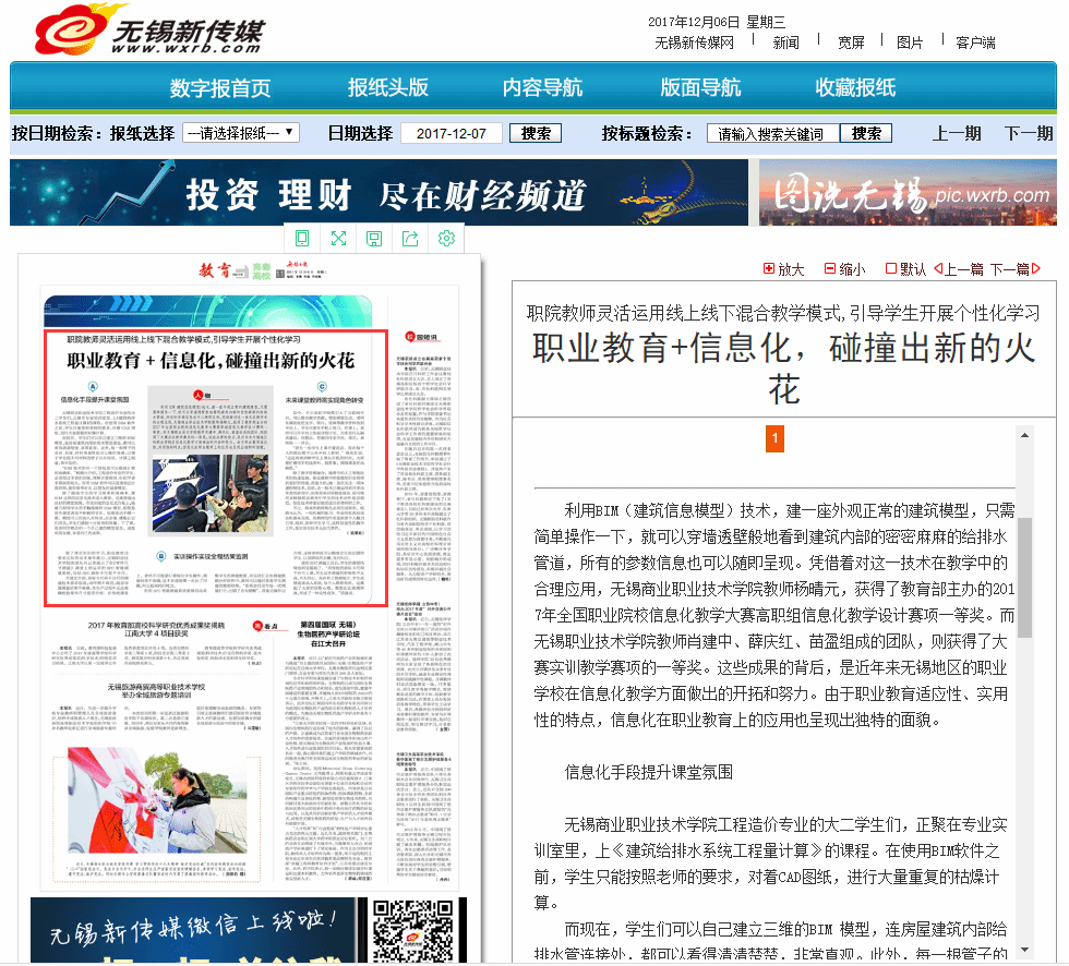 【无锡日报】职业教育+信息化,碰撞出新的火花