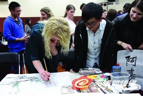 乐鱼app登录入口国际合作学校丹麦科灵国际商业学院师生代表团一行59人近日来锡交流学习,该校中丹合作项目学生和校书画协会的学生代表一起度过了美好的一天。