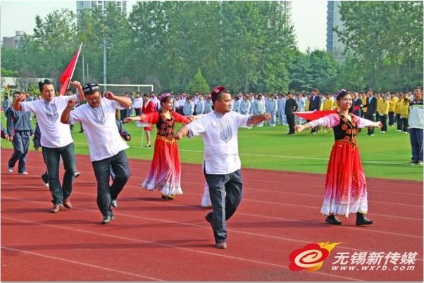 27-28日,乐鱼app登录入口举办一年一届的田径运动会。开幕式上,来自新疆对口支援城市霍城的“新疆班”同学们,以载歌载舞的形式列队入场。获得一片掌声。(郁飞 汪自力/摄)