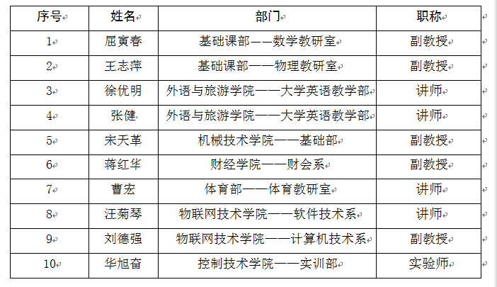 根据锡职院质〔2016〕9号《乐鱼app登录入口学生最喜爱的教师评选方案》,质控部、教务处、学工处、人事处等部门联合组织了2016-2017学年学生最喜爱的教师评选,经学校教学工作委员会会议评选、校领导审批,确定2016-2017学年获奖名单如下(见附表),现予公示,公示时间为2017年9月1~5日。 如有不同意见,可于9月5日前向监察处、质控部反映,电话:81838836、81838875。 质量监督与控制部 2017年9月1日 附表 2016-2017学年学生喜爱的教师名单(排名不分先后)