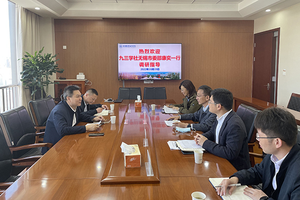 10月19日上午,九三学社无锡市委专职副主委兼秘书长邵康奕一行2人到我校考察调研九三学社乐鱼app登录入口支社建设工作。校党委书记龚方红,统战部部长朱翔,校办副主任程继明,九三学社乐鱼app登录入口支社主委杨丽等相关人员参加座谈会。