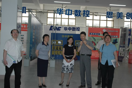 2006年6月11日,教育部高等教育司高职高专处处长范唯,在省教育厅高教处处长王煌、副处长经贵宝陪同下,对我院进行了教育教学检查。图为部、厅有关方面领导考察产学合作中心。
